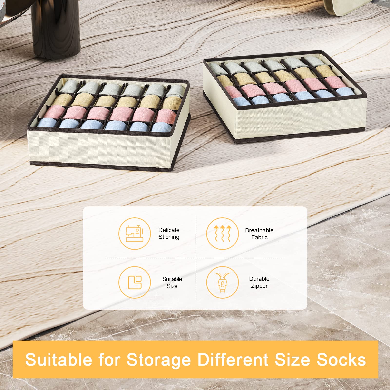 Versatile Drawer Organizer: Features 24 compartments, ideal for organizing socks, underwear, bras, ties, belts, handkerchiefs, and more.