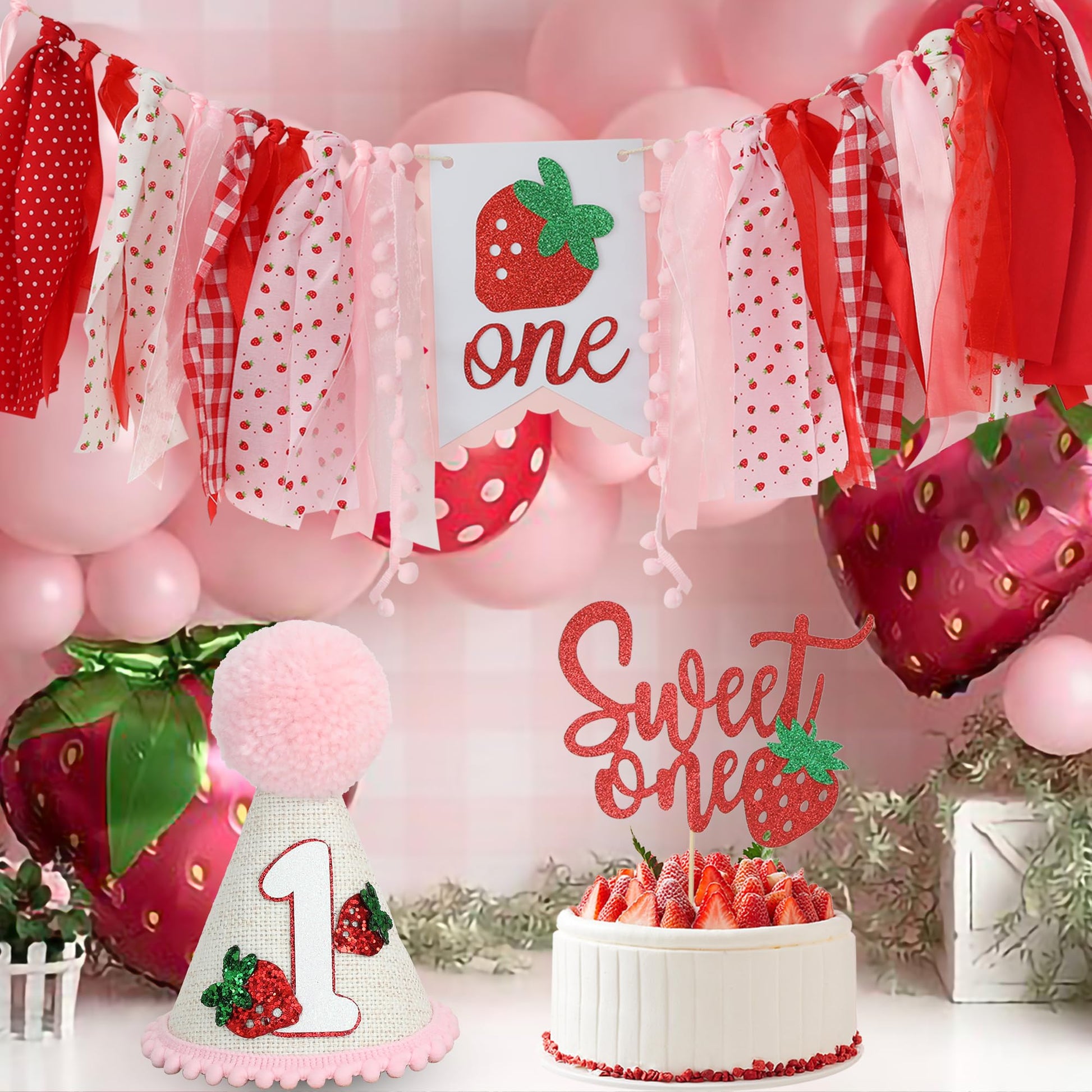 Complete 3-Piece Set: Includes a pink and red tasseled highchair banner with wooden beads and number accent, a soft felt crown hat with matching number, and a cake topper — everything you need for a memorable first birthday setup.