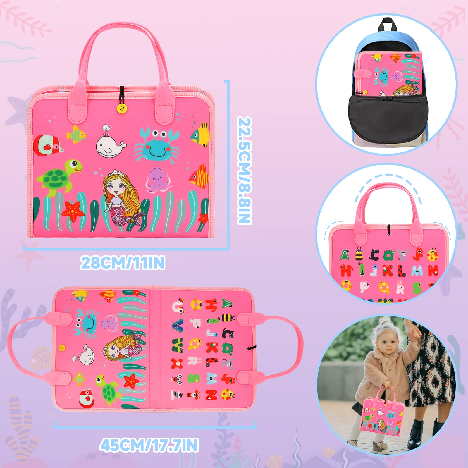 Mermaid Busy Board for Girls – Montessori Sensory Toy for Toddlers Age 1–5 | 17 Life Skills | Travel Activity Board in Pink