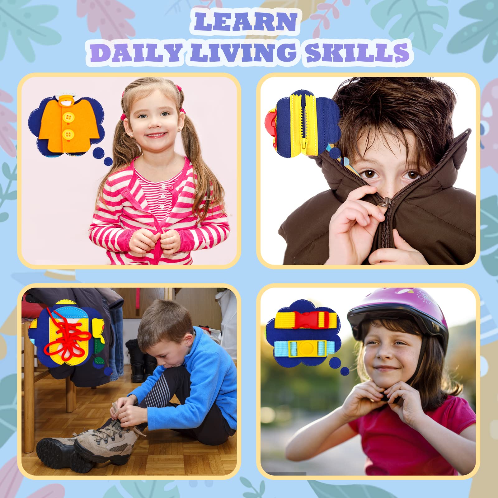 17 Interactive Activities: Includes zippers, buttons, buckles, laces, Velcro, clocks, dates, and alphabet flaps — all designed to improve fine motor skills and confidence.